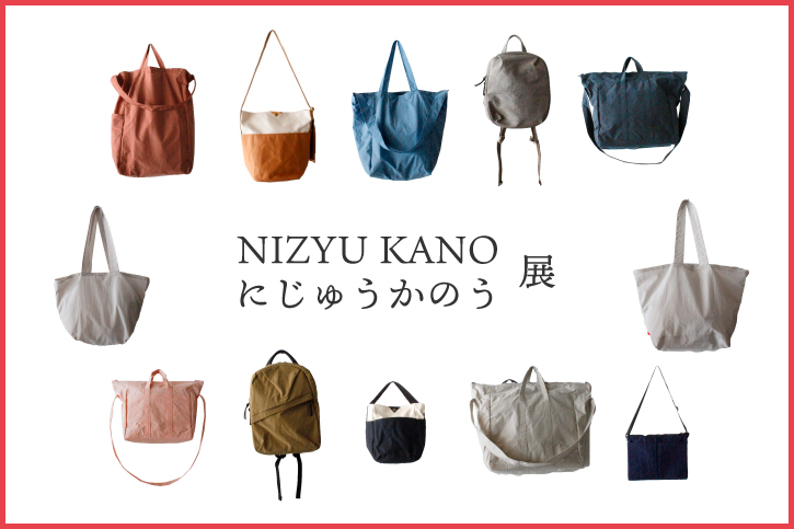 今展では、「いつものバッグ」のお披露目と「NIZYU KANO」世界観を感じていただけます。